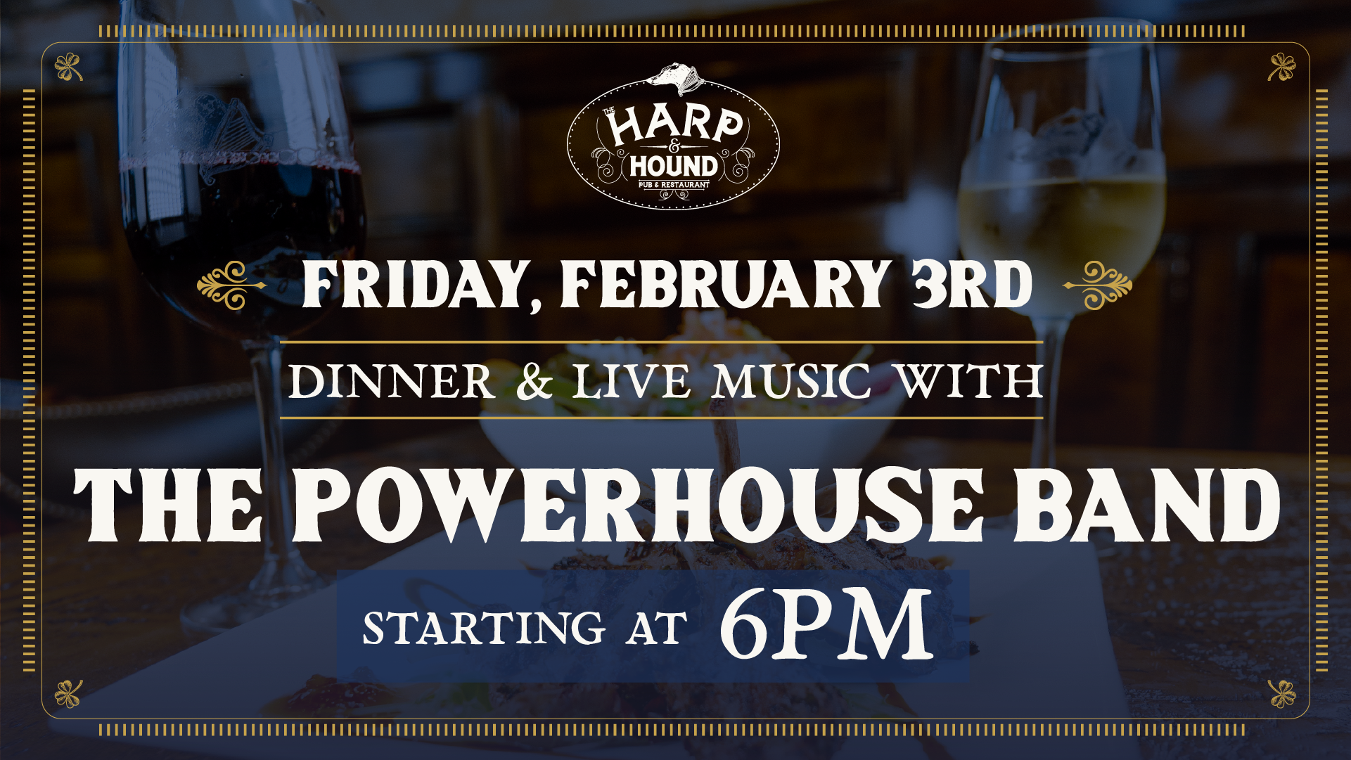 Hang out with us for dinner and live music here at The Harp & Hound!