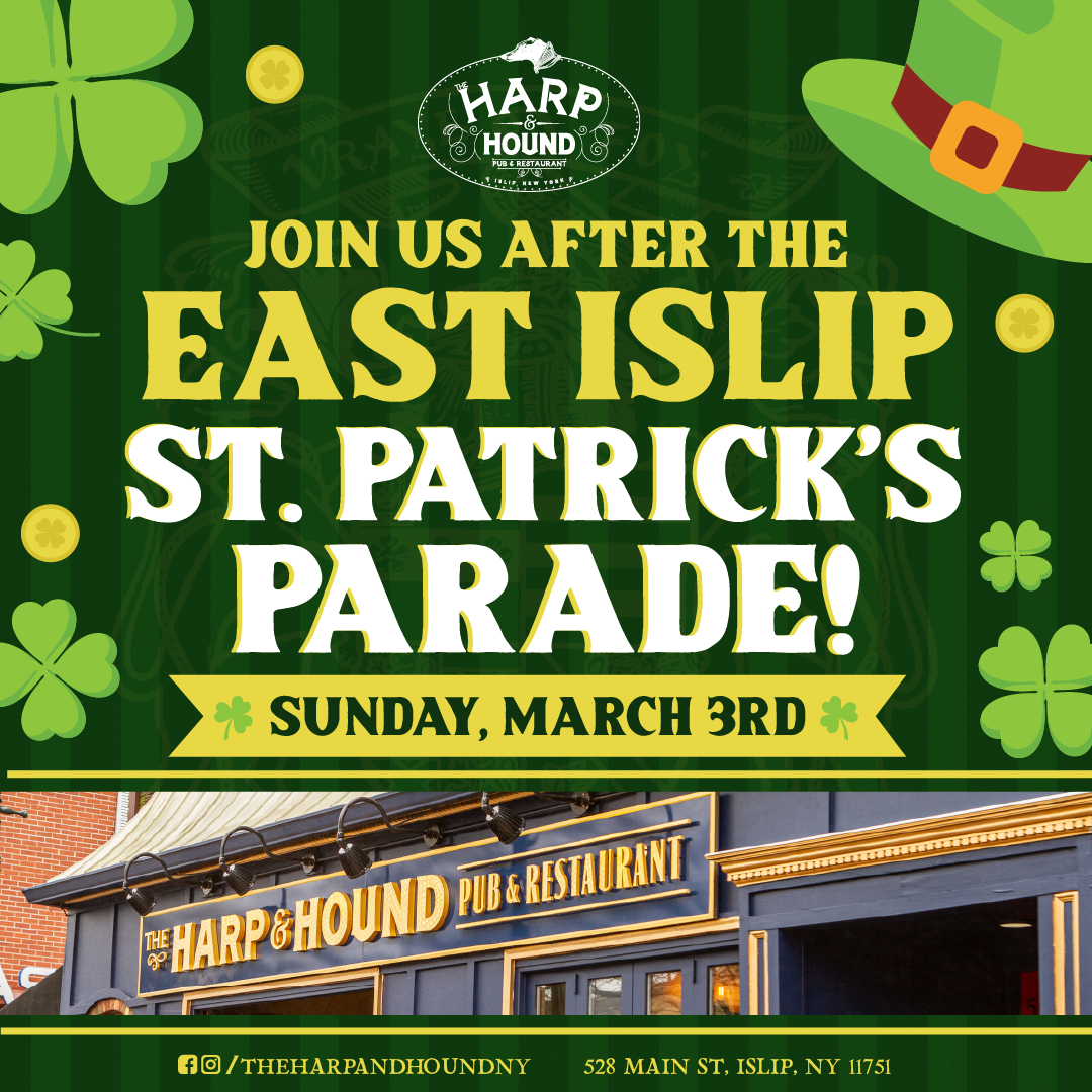 Let us be your headquarters for East Islip’s St. Patrick’s Parade!