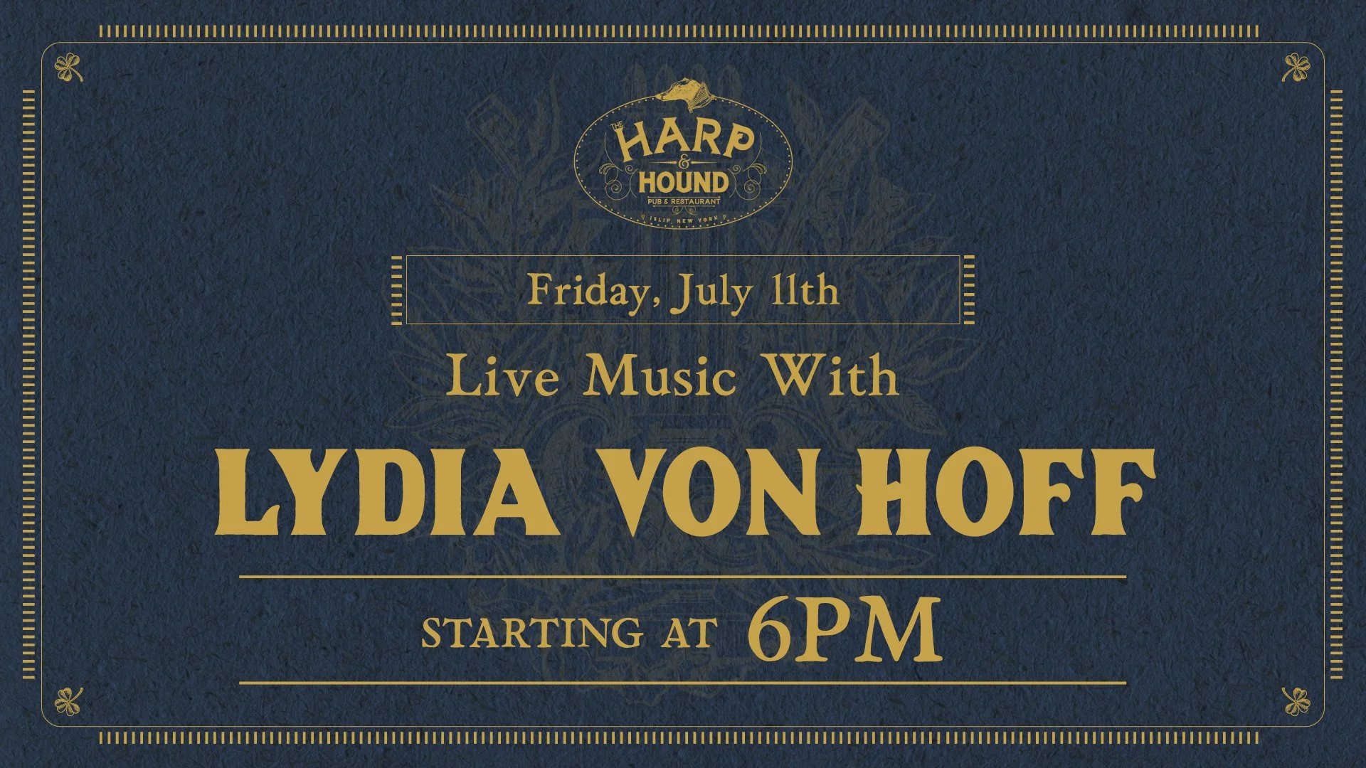Enjoy dinner and live music by Lydia Von Hoff at 6 PM. Then, keep the party going with a live DJ at 9 PM.