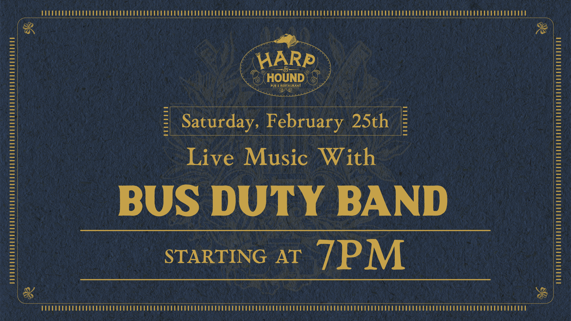 Swing on by for live music with Bus Duty Band here at The Harp & Hound!