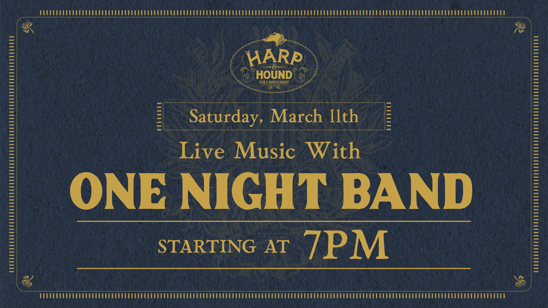 Spend the weekend at The Harp & Hound! Join us for live music with One Night Band!