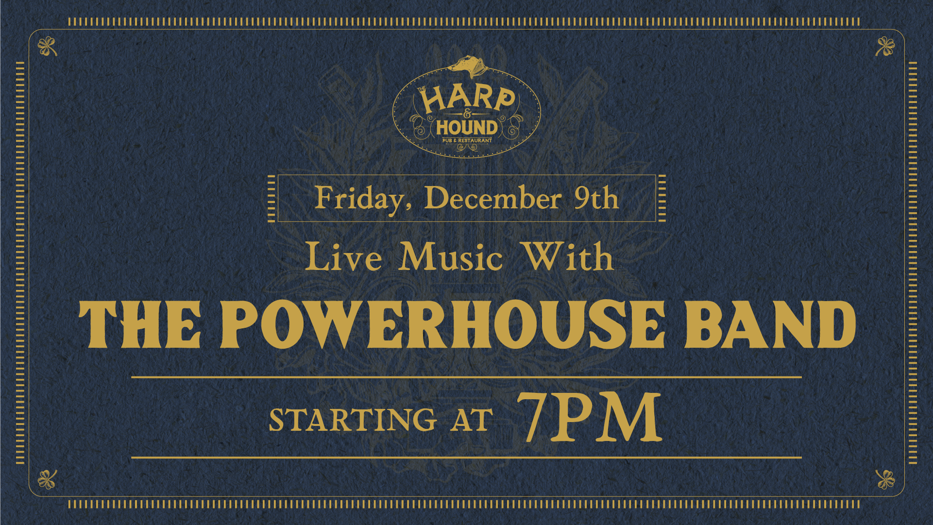 Join us at The Harp and Hound on December 9th for the live music of The Powerhouse Band at 7 pm!