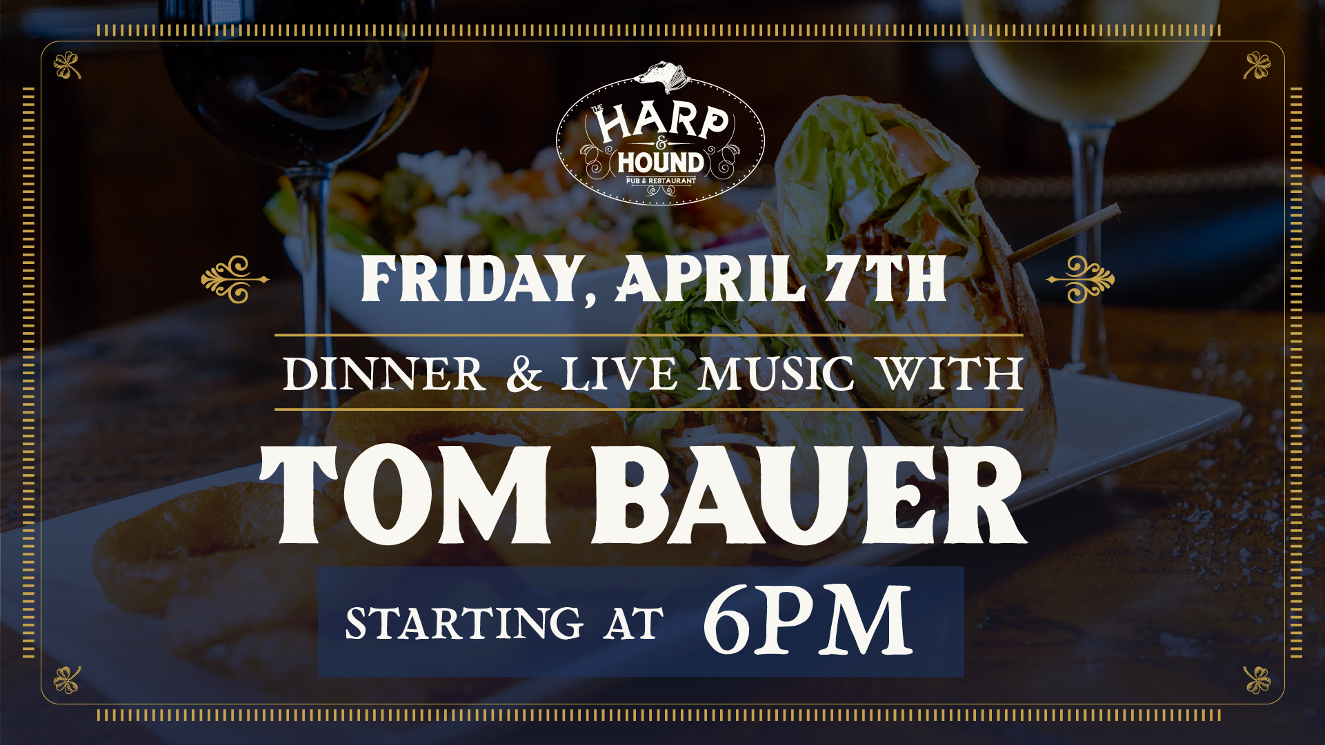 Enjoy dinner and live music with Tom Bauer at The Harp & Hound!