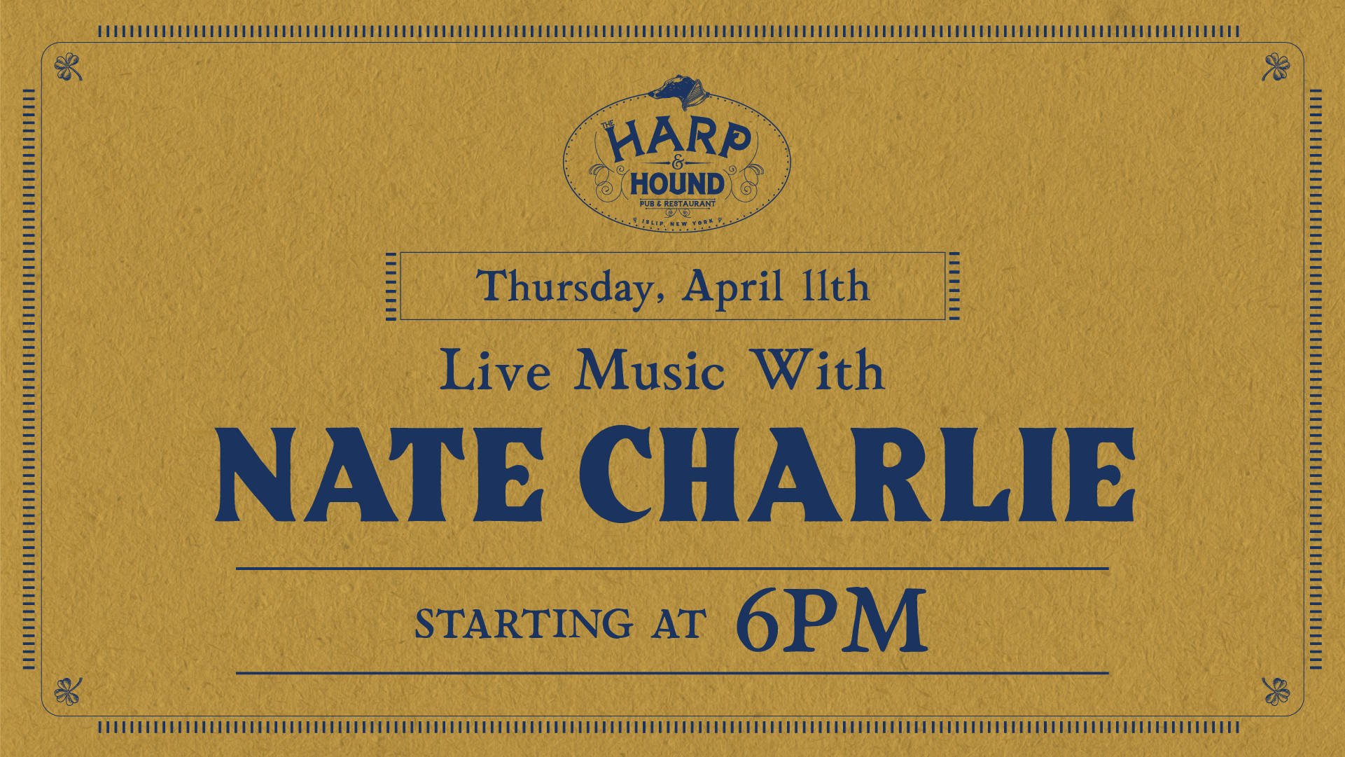 Enjoy live music with Nate Charlie starting at 6PM at the Harp & Hound!