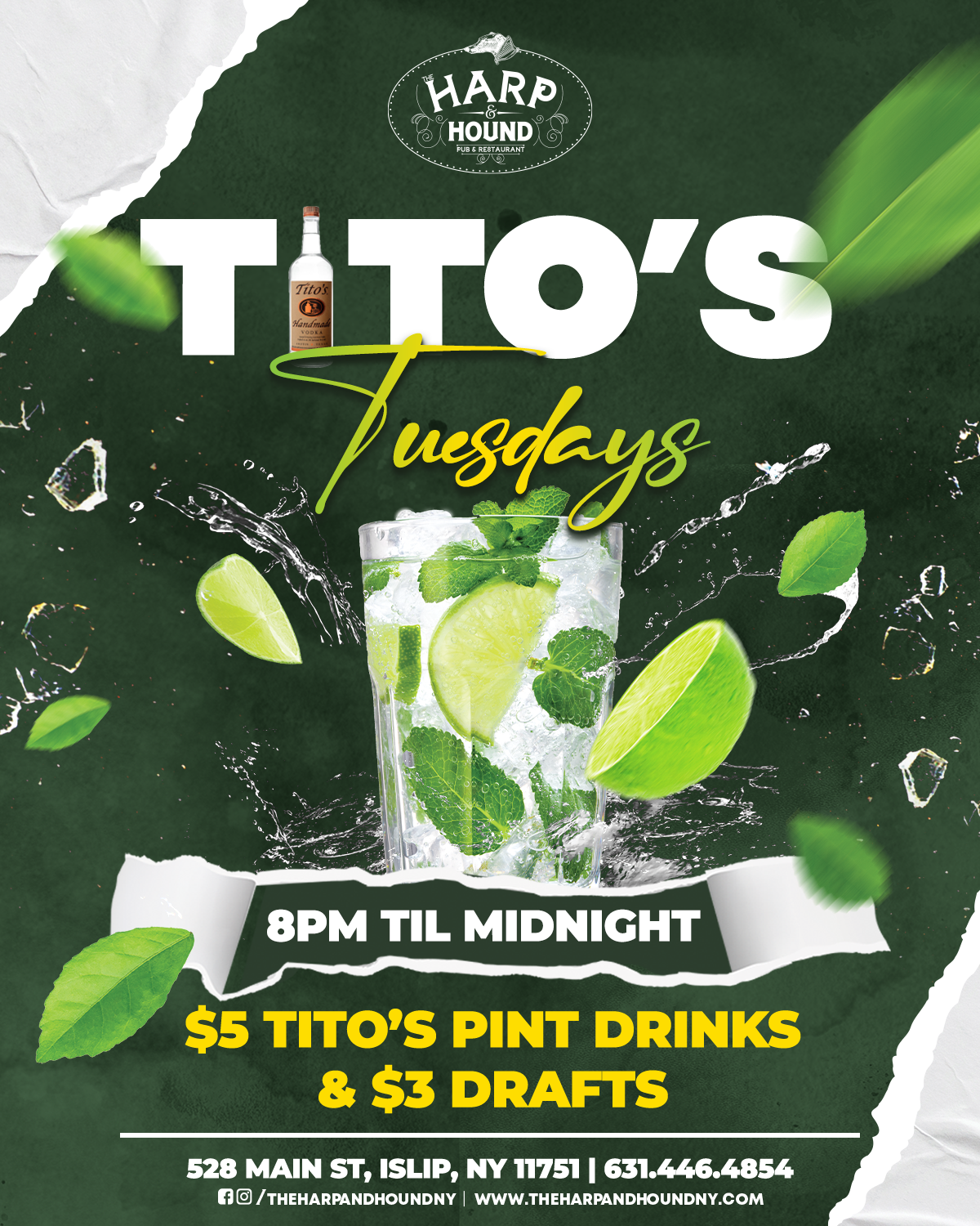 Join us for Tito’s Tuesday! $5 Tito’s Pint Drink and $3 Drafts!