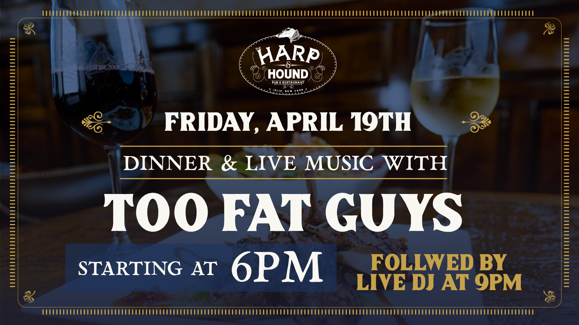 Enjoy the sounds of live tunes with Too Fat Guys tonight at 6PM.