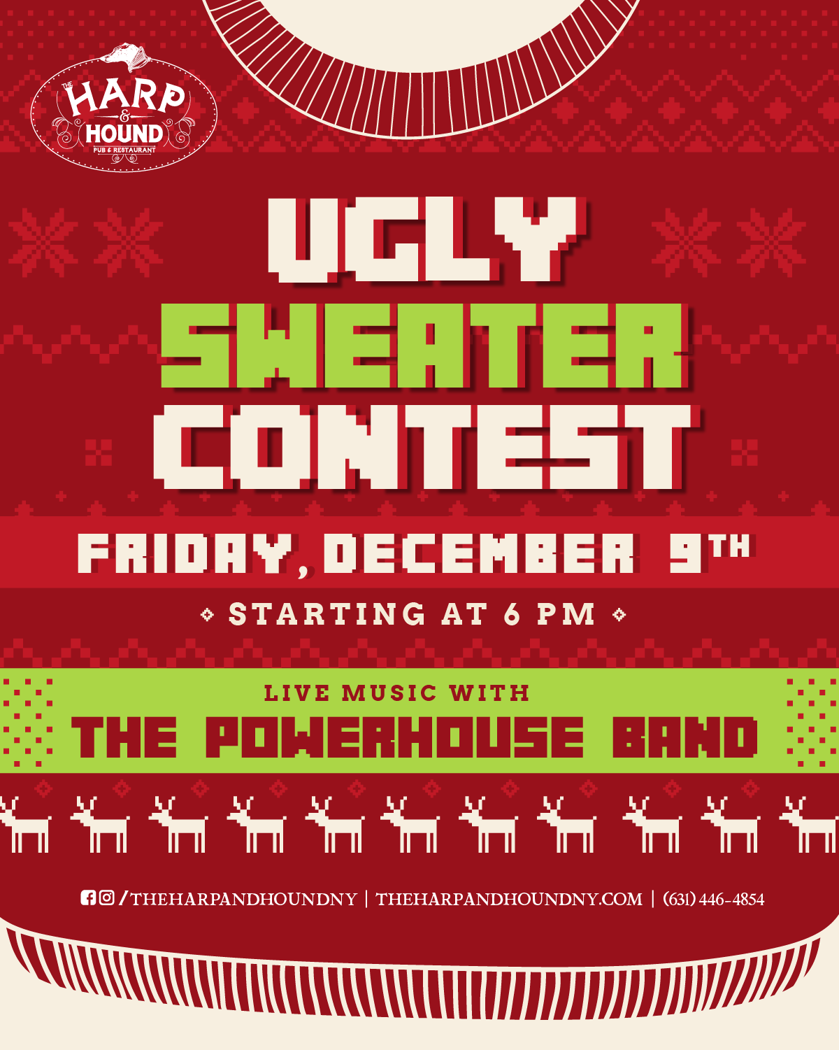 Join us for live music with The Powerhouse Band on December 9th along with our Ugly Sweater Contest!